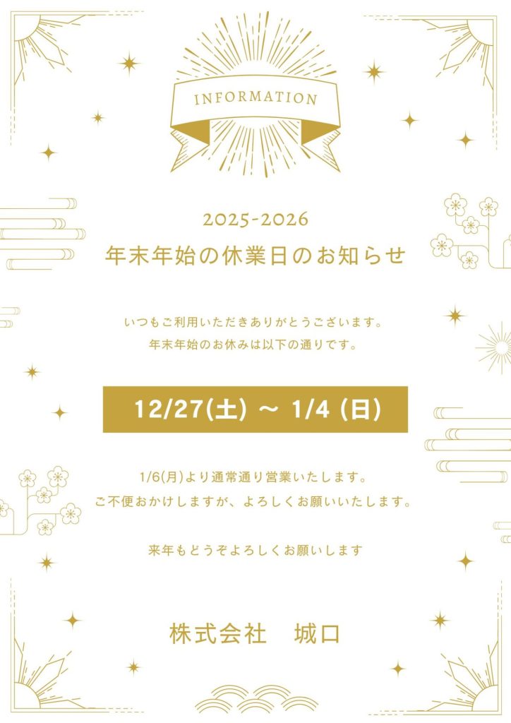 お休みの期間に頂いたお問合せは、1月5日(月)にご連絡させて頂きます。
