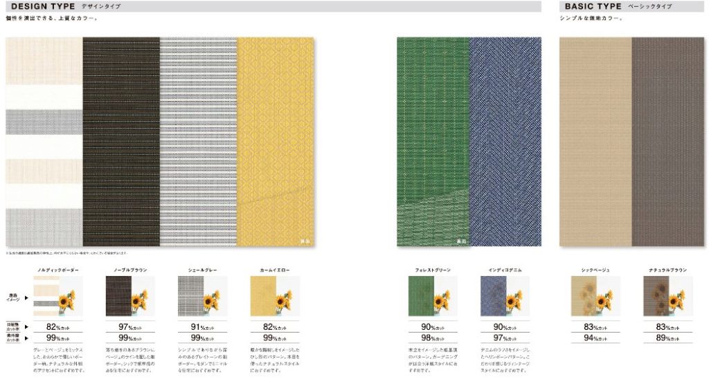 生地のタイプは透け感の少ない「プライバシーモデル」が4種類、ほどよい透け感で光を取り込める「ライトモデル」が2種類、おうちの外観に合わせやすいシンプルな「ベーシックタイプ」が2種類と、カラーバリエーションも豊富です。またボックスは6つのカラーをご用意。窓枠に合わせてお選びください。