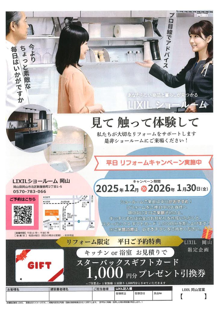 LIXIL岡山ショールームでは、ここでしか体験できない限定イベントを開催します。